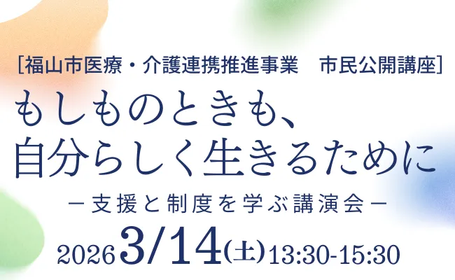 福山市在宅医療・介護連携推進事業 市民公開講座「もしものときも、自分らしくいきるために-支援と制度を学ぶ講演会-」申込フォームhttps://select-type.com/e/?id=tAtxDoCdX_c...