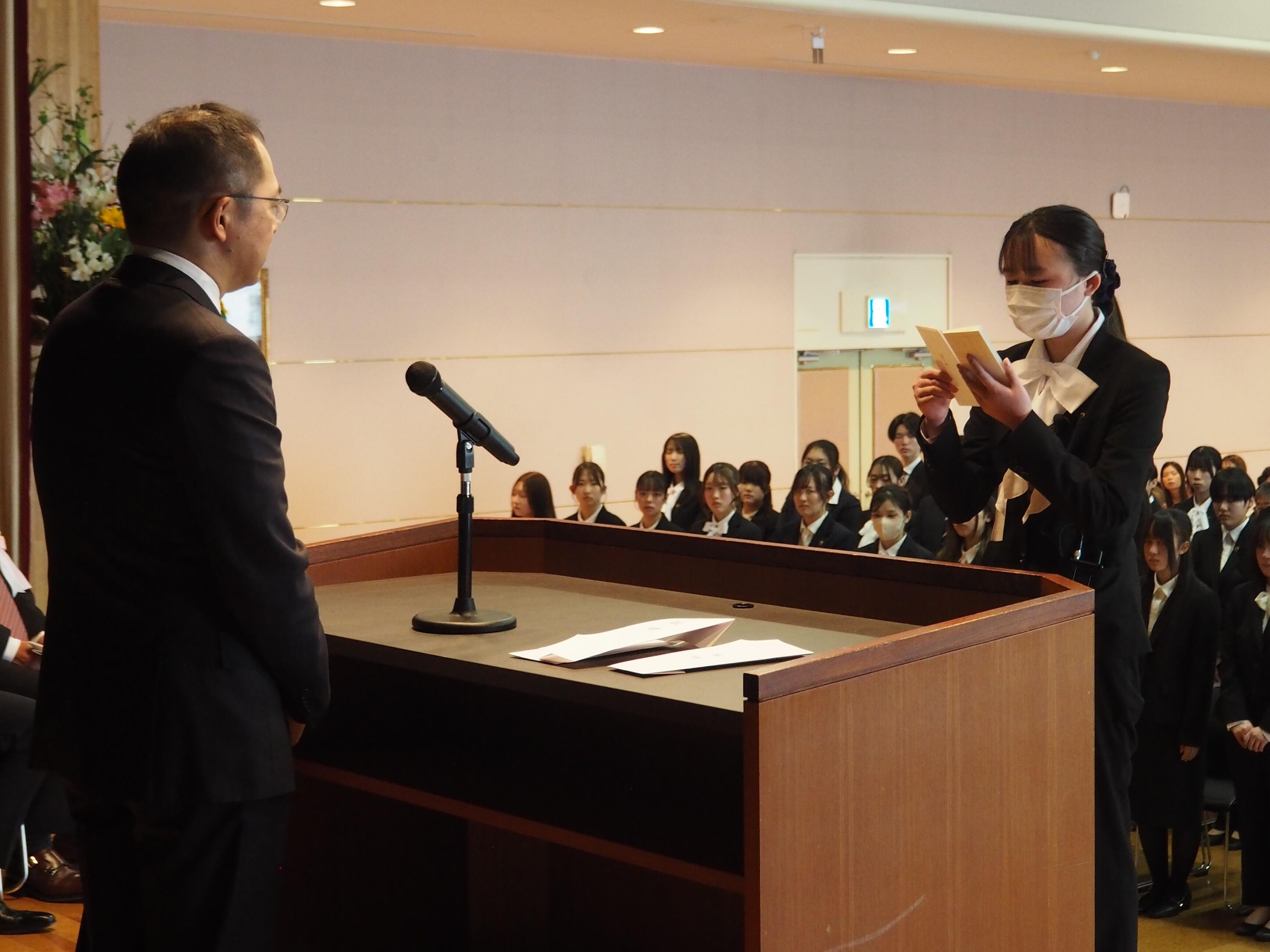 入学後は平坦な道ではないかもしれませんがみなさんが仲間と助け合い充実した学校生活を送り、看護師の資格を得て地域医療に貢献するという大きな花を咲かせてほしい。」