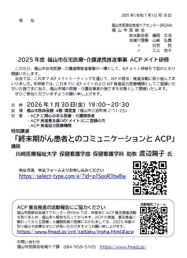 2025年度 福山市在宅医療・介護連携推進事業 ACPメイト研修