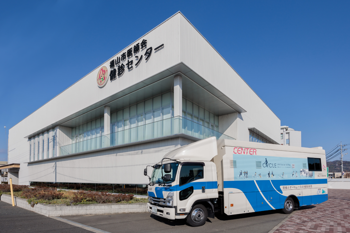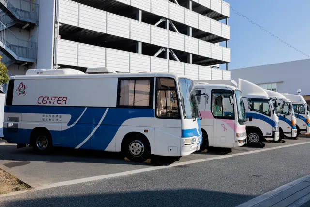 検診車を指定場所へ駐車し、健診機材の準備完了後に健診を開始します。